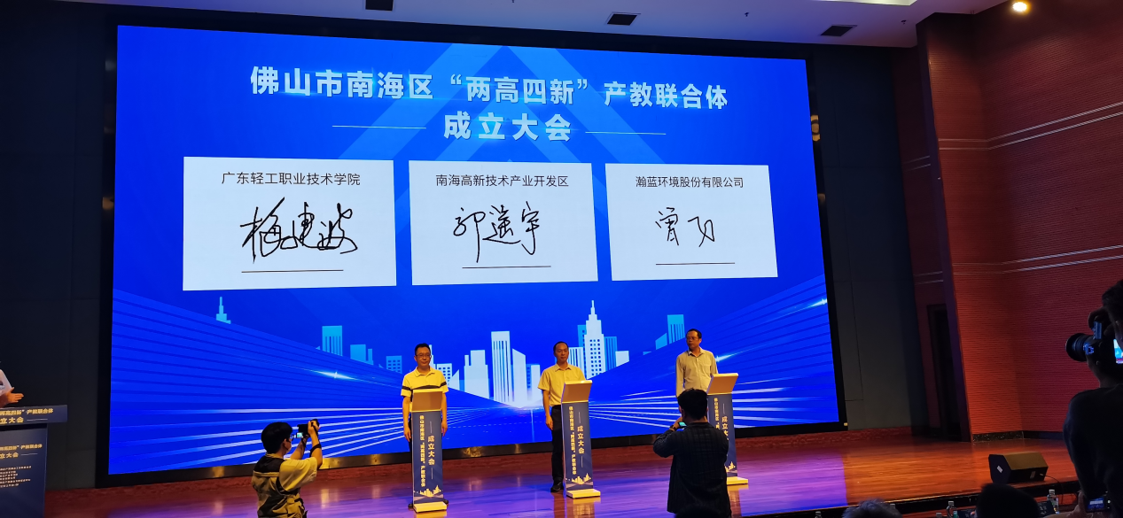 2023年5月17日,广东轻工职业技术学院和佛山高新技术产业开发区管理委员会、瀚蓝环境股份有限公司共同牵头,成立了佛山市“两高四新”产教联合体。联合体成员包括佛山市人民政府等政府职能部门、高职院校7家、本科院校5家、中职学校9家、科研机构23个以及企业2307家。经不懈努力,佛山市“两高四新”产教联合体于2023年9月4日获得教育部首批产教联合体立项。