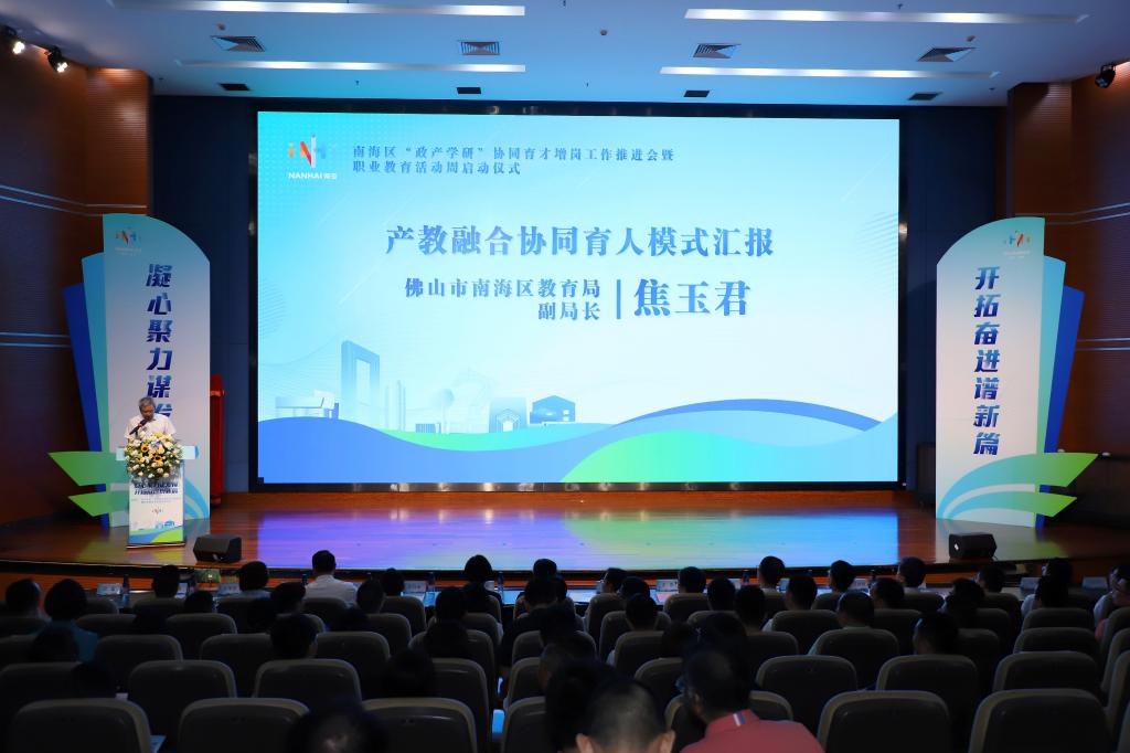 南海区教育局、区属地高校、职业院校、省级产教融合型企业、区行业协会、学生等代表齐聚一堂,共同探讨推进职普融通、产教融合、科教融汇,实现以新质生产力引导职业教育的创新发展,加快建设一支知识型、技能型、创新型产业人才大军,为南海产业注入新动能。