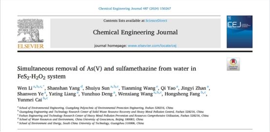 近期,我校环境工程学院黎雯博士团队最新研究成果“Simultaneous removal of As(V) and sulfamethazine from water in FeS2-H2O2 system”在国际工程技术类顶级期刊《Chemical Engineering Journal》在线发表。我校为第一署名单位,黎雯为第一作者,这是我校再次以第一作者单位发表中科院一区顶级期刊论文,创发表高影响因子、高水平期刊论文的新高。