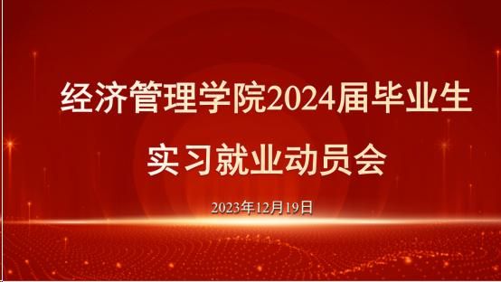按照教育部印发《关于做好2024届全国普通高校毕业生就业创业工作的通知》决策部署,牢牢把握主题教育“学思想、强党性、重实践、建新功”的总要求,扎实构建经济管理学院实习与就业工作新格局,推进2024届毕业生实习与就业工作,实现就业工作提质增效,确保学生实习与就业工作平稳有序开展,经济管理学院于2023年12月19日下午14点,在图书馆三楼报告厅召开2024届毕业生实习就业动员会。