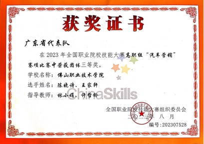 “汽车营销”赛项获2023年全国职业院校技能竞赛三等奖