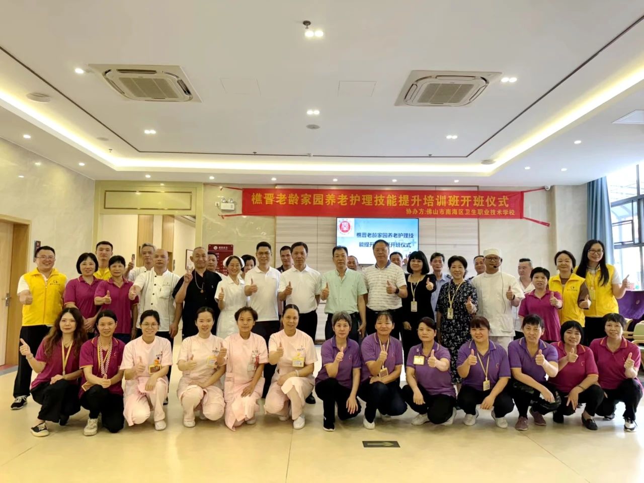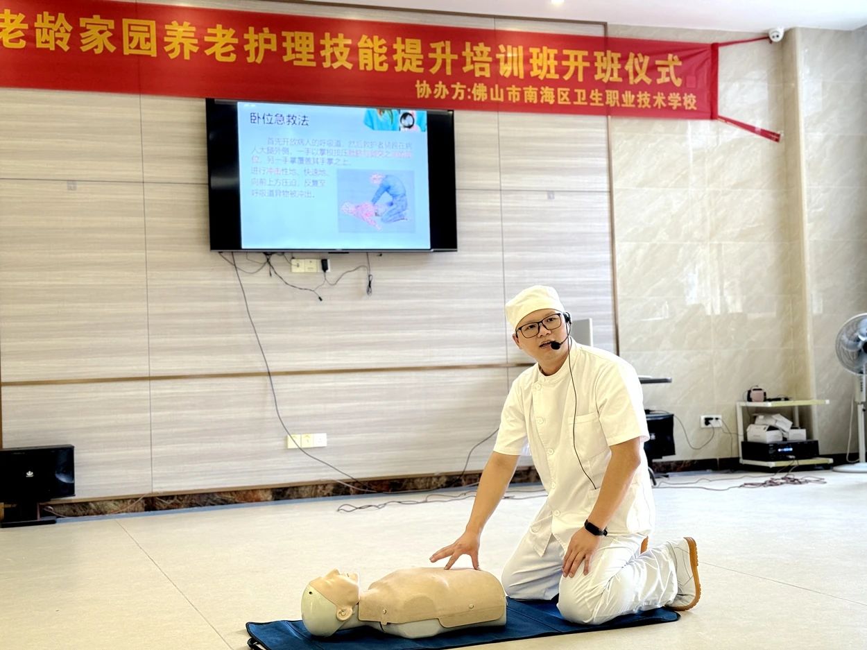 2024年4月25日,在樵晋老龄家园举行开班仪式和培训第一课,我校郭锦贤书记、刘俊超副校长、李浩瑜副主任、钟丽明老师、徐现斌老师与樵晋老龄家园黎梓详执行董事、肖华兰院长、李彦渔主任、樵晋老龄家园员工共同出席了本次开班仪式。在简单而隆重的开班仪式后,徐现斌、钟丽明老师结合真实事例,从理论上对“海姆立克法”、“心肺复苏术”进行详细讲解,同时两位教师在操作步骤和动作规范上对学员进行一对一的操作指导。徐现斌、钟丽明老师以真实的情境教学为手段,引导学员参与学习,强化体验感,让学员体验到救护的紧张感,又调动起学员学习的积极性和主动性。此次培训结束后收到了学员的广泛好评,学员们纷纷表示:此次培训内容十分贴合工作实际,具有很强的实用性,不仅提升了职业技能水平,还增强了职业自豪感,为更好地服务老年人打下了坚实的基础。未来,我校将继续深化与樵晋老龄家园的合作,共同探索更多有利于养老服务人员成长和发展的培训模式,为推动我国养老事业的健康发展贡献更多的力量。