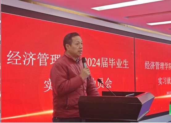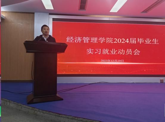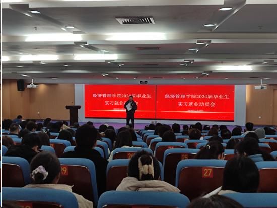 按照教育部印发《关于做好2024届全国普通高校毕业生就业创业工作的通知》决策部署,牢牢把握主题教育“学思想、强党性、重实践、建新功”的总要求,扎实构建经济管理学院实习与就业工作新格局,推进2024届毕业生实习与就业工作,实现就业工作提质增效,确保学生实习与就业工作平稳有序开展,经济管理学院于2023年12月19日下午14点,在图书馆三楼报告厅召开2024届毕业生实习就业动员会。